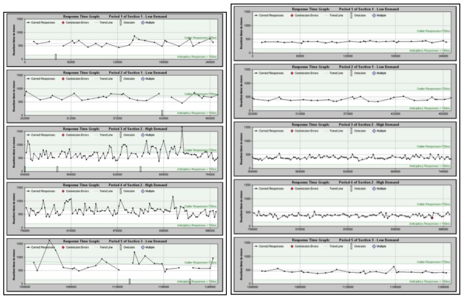 The pre-post changes in the distribution of reaction times are illustrated in Figure 4. And the pre-post changes in variability are illustrated in Figure 5.
